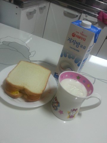 아들 밥을 다 먹이고 저도 스팸 에그 토스트로 아침을 먹습니다