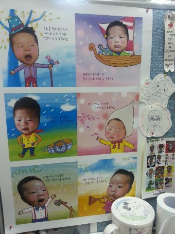 깨알같이 붙여놓은 아들 사진들을 감상하고 일하다보면