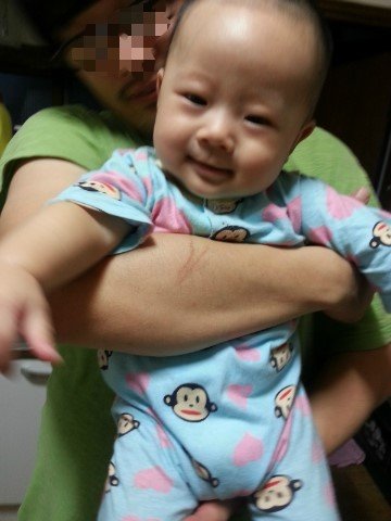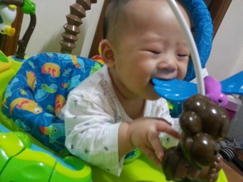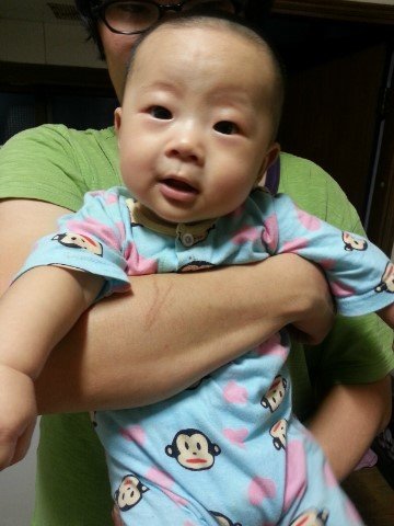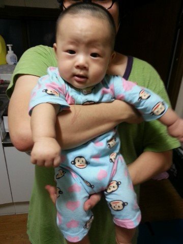 저의 격한 뽀뽀폭격으로 이성을 잃은 우리 아드님의 모습입니다