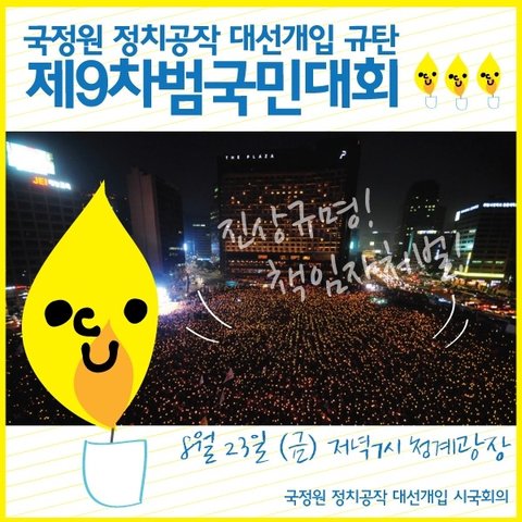 8월 23일 금요일 저녁7시 청계광장 국정원 정치공작 대선개입 규탄 촛불 범국민대회에서 국민의 힘을 모읍시다.~~~