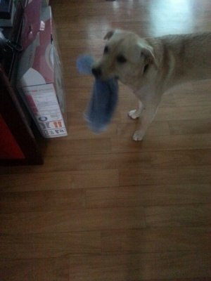 가족들을 오랜만에 보면 기쁨에 수건를 물어옴