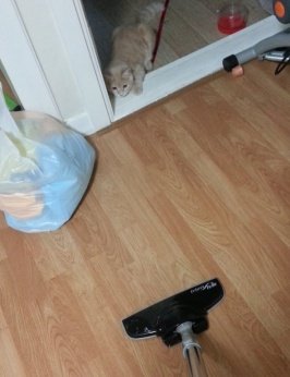 울집에 와있던 동생고양이 양고는 청소기만 돌렸다하면