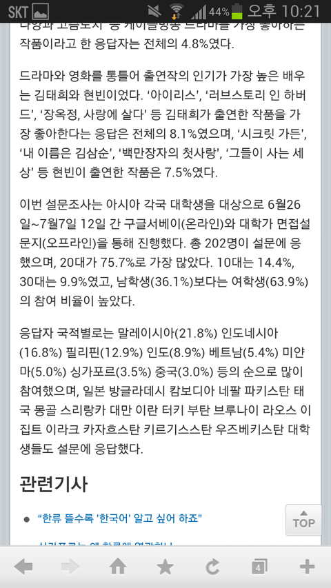 여러나라에서 설문조사를함