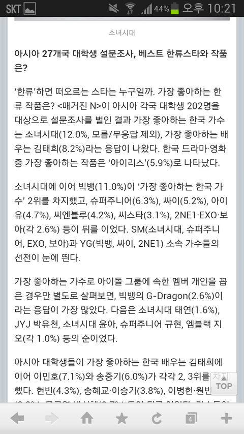 소녀시대 아시아 27개국 설문조사 1위