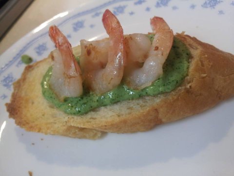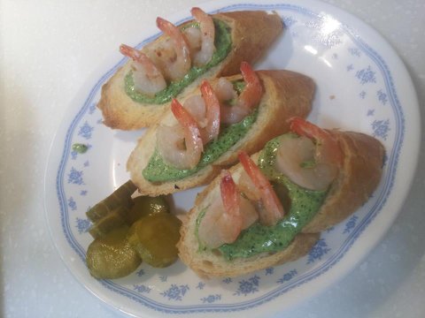 빵은 보시다시피 바게트 자른거고, 새우도 냉동 자숙새우에요.