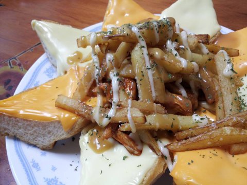 이렇게 무슨 퍼즐맞추기 하듯이 만든 피자가 칠교피자.. 안엔 핫소스와 고추장소스에 버무린 닭가슴살이 들어있고.. 위에 감자튀김은 직접 튀긴건데 어차피 소스얹으면 눅눅해지니 그냥 햄버거먹다 남은 감자튀김 응용하셔도 좋을 것 같고.. 위엔 제 특제 (-_-?) 불고기 크림소스와 마요네즈를 두른거에요.