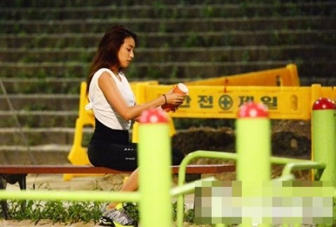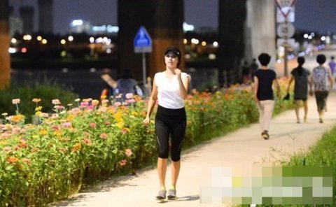 완전 야밤에 한강 둔치에 나와 운동하는 모습이 딱 포착된 씨스타 보라