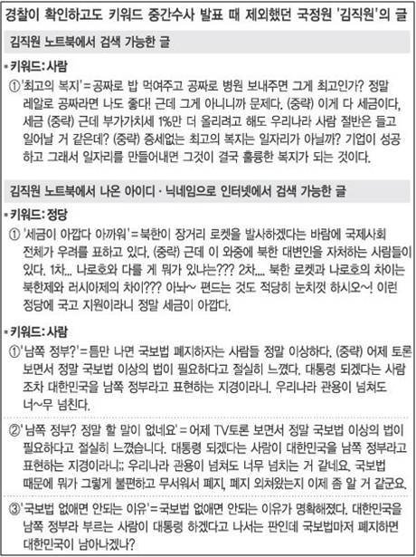 당시 수사를 담당했던 수서경찰서 권은희 수사과장은 100개의 키워드를 분석해달라고 서울청에 요청했다. 하지만 김용판이 청장으로 있던 서울경찰청이 이를 거절하고 4개로 축소한것이다. 100개의 키워드로 김 씨의 하드와 구글링 검색이라도 했더라면 결과는 엄청나게 달라졌을 게 분명하다.