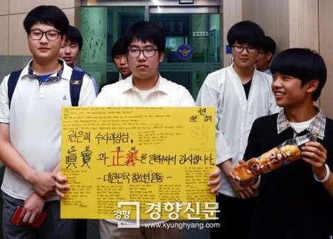 고등학생들도 권 과장을 응원했다. 21일 오후 대원외고 등 수도권 고등학생 7명이 송파서 수사과장실을 찾아 응원메세지가 적힌 편지와 빵 100여개를 권 과장에게 전달했다.
