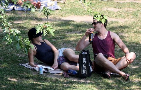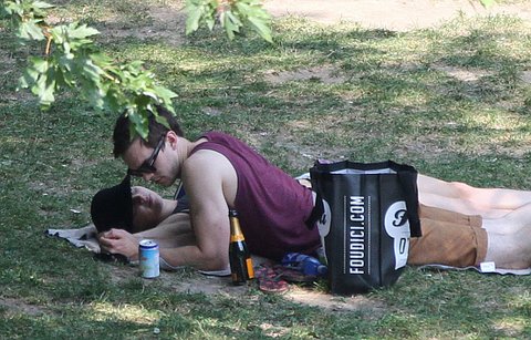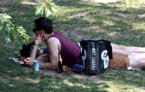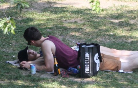 조촐하게 짐싸들고 손 붙잡고 공원으로 나들이 나온 풋풋한 커플~