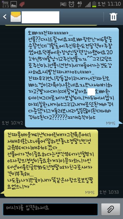 제 친구 그러니까 그새끼 친구랑 사귀는 제 친구가 지 오빠한테 이 톡을 보내줌 ㅡㅡ;