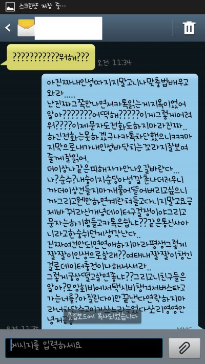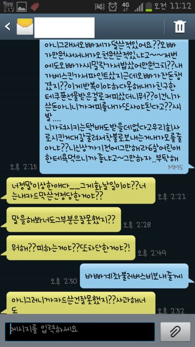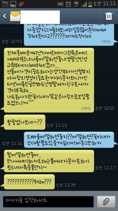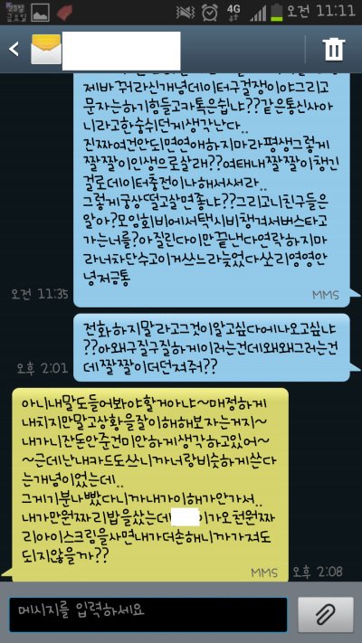 맞춤법 다 틀리고 진짜..내가 뭐에 씌여서 저런새끼랑 사겼는지 ㅠㅠ