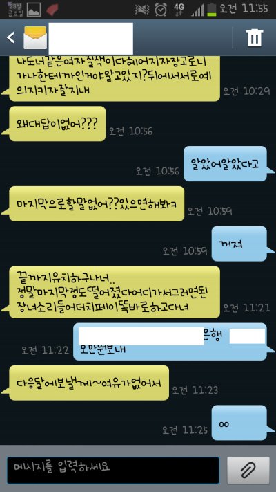 저는 그 날 그 이후로 카톡 차단하고 전화 무시하고 문자 씹었는데