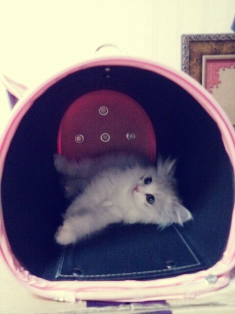 샤인누나를 피해 이동가방에 숨은 레오 ㅋㅋㅋㅋ 이동가방이 작은 사이즈라 샤인 들어가면