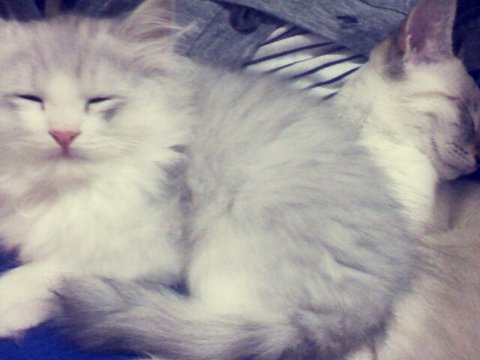 집사의 무릎에서 같이 잠을 자기도 하고짱.