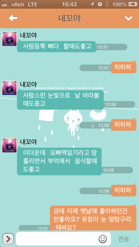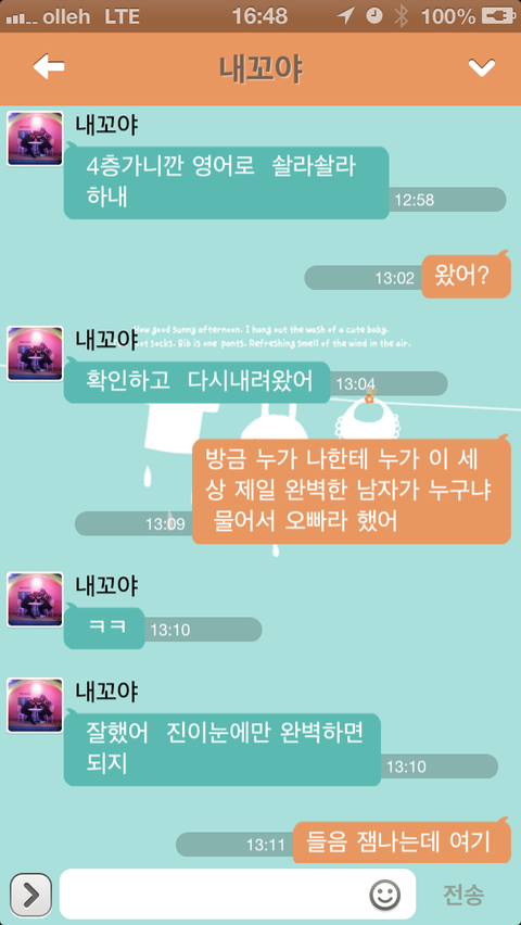 아! 사진은 신랑이랑 달달한(제 기준에) 대화들...