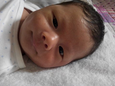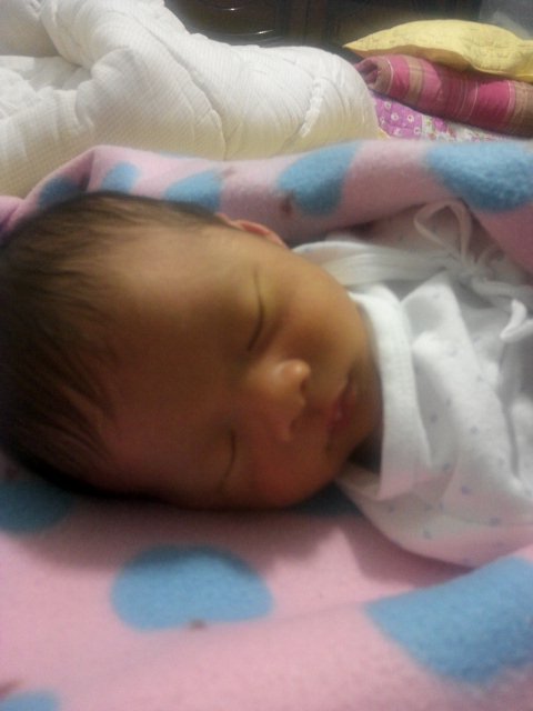 애기낳고 씻기구 아침 면회때 찍은거예요~좀 작죠??3.1kg이였을때예요~^^