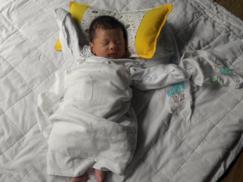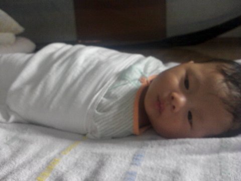 ▲애벌래...손때문에 놀라니 얇은 귀저기천으로 꽁꽁싸맨 오늘찍은 사진이예요~저희아들 귀저기는 천귀저기써요~그게 귀저기값안들고 제가힘들어도 빨아서 쓰고있어요~