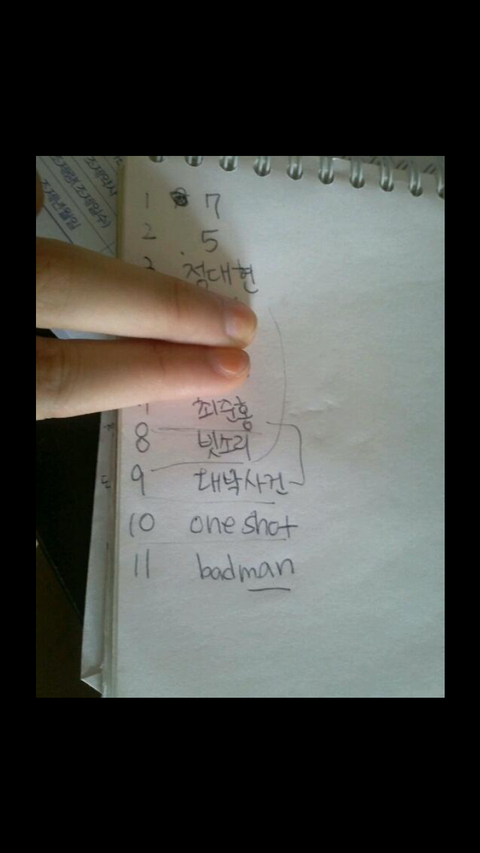 5) 8, 9, 10, 11번에 노래재목들을 각각 적으세요.
