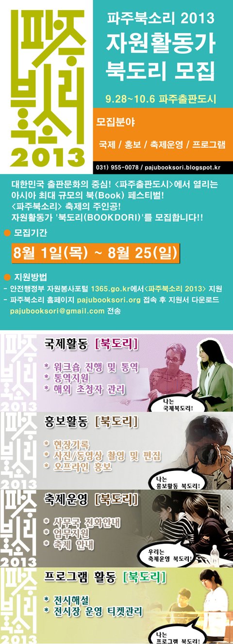 안녕하세요~ 파주북소리2013을 알리고 있는 대학생 자원활동가 입니다~^^