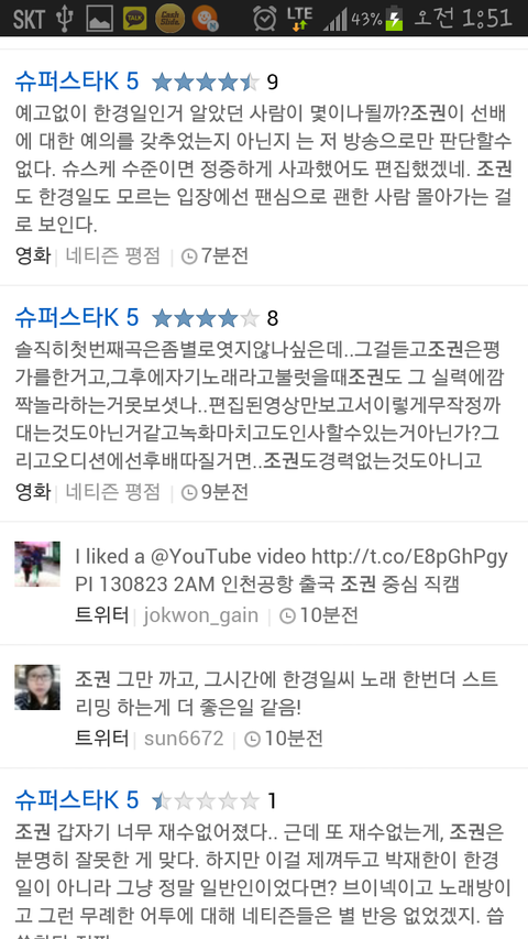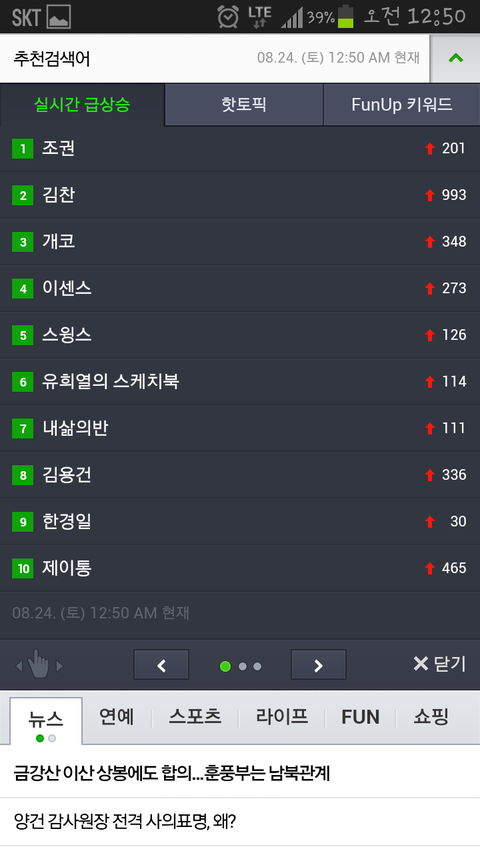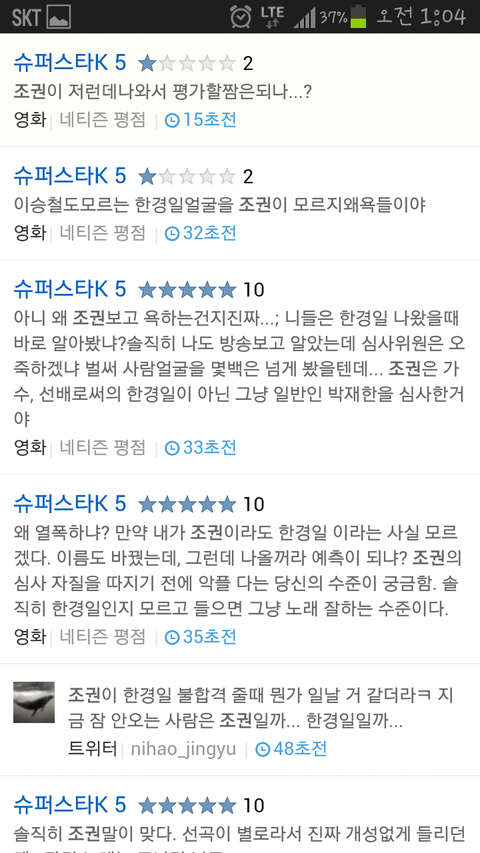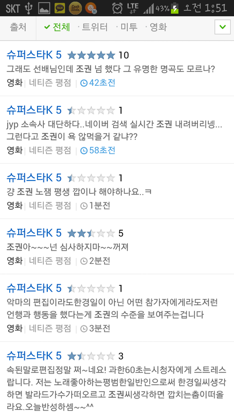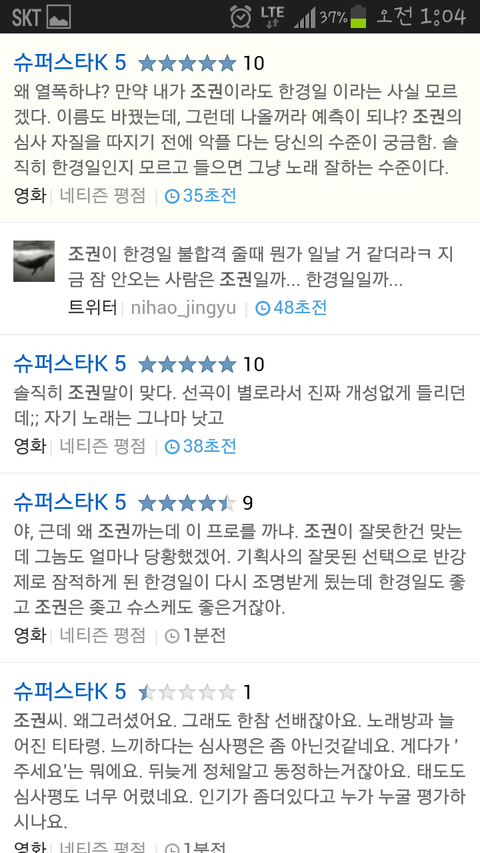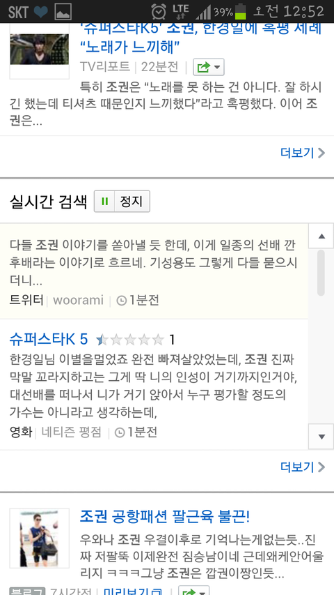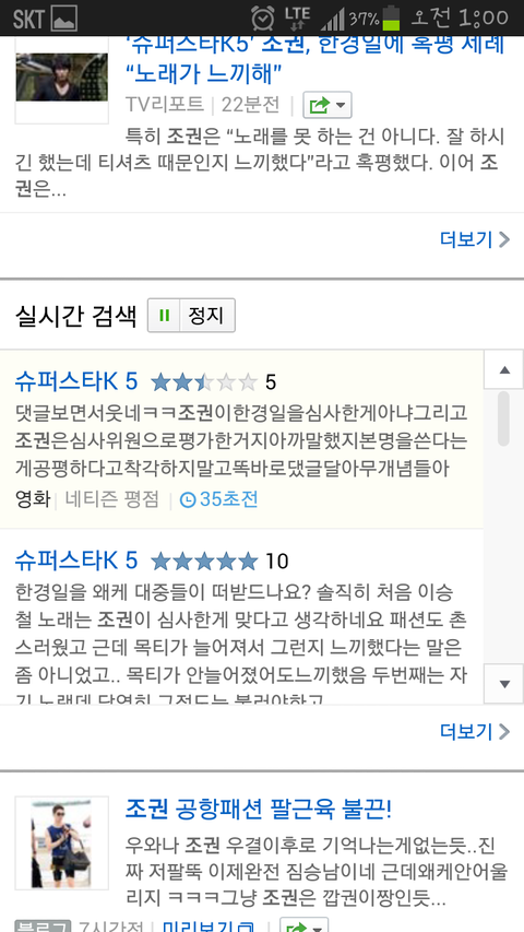 아까 티비를 보고 핸드폰 켜서 실시간검색을 봤는데요
