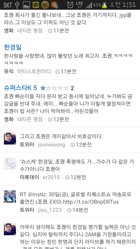 조권이 검색어 1위를 해서 2am을 좋아하는 아이엠으로서 기분이 엄청좋았는데요