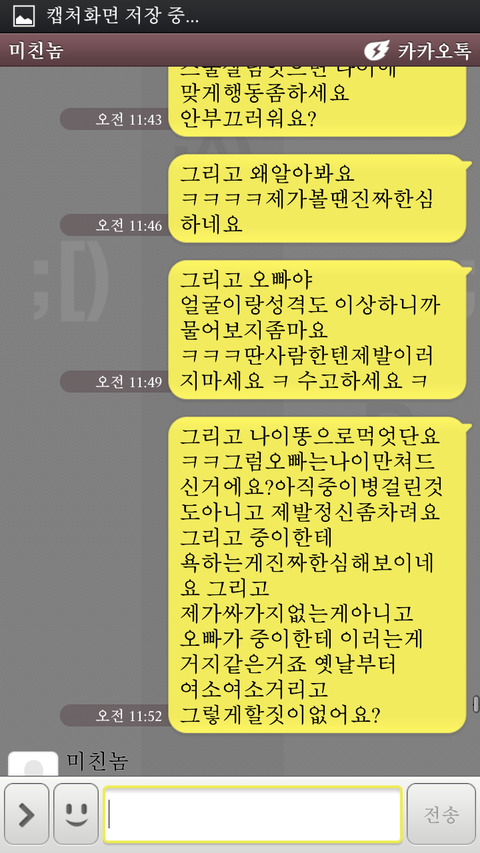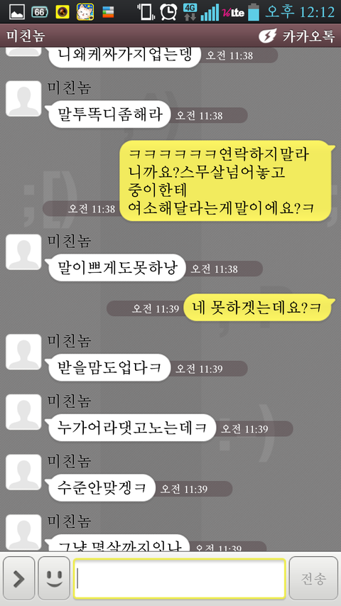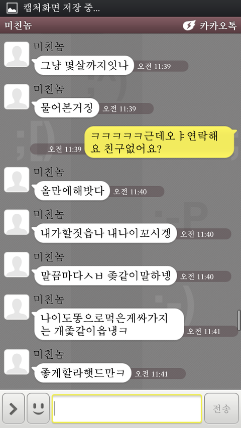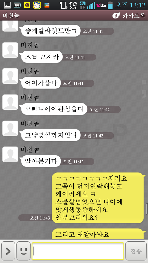 안녕하세여 제가네이트판처음써보는건데ㅔ 너무어이가없어서 음슴체로 가겟음ㅋ 지금나는 풋풋한중이임 ㅋ 첨엔 내가 초5때임 ㅋㅋㅋ그새끼는 미친놈이라고하겟음ㅋㅋㅋㅋㅋ 내가초5때 미친놈은고3이엿음 친구소개로알게됫엇음 근데 그미친놈이 자꾸 네이트온걸면서 초육소개해달라하고 일진인척조카햇음;;;;ㅋㅋㅋㅋㅋㅋㅋㅋㅋ개또라이 ㅋ근데그땐 순수햇던지라 다믿음ㅋ 그엏게 가끔씩연학으뢔ㅛ음 그리고 중1때 내가 연락씹르니까 네이트온으로테러가옴ㅋㅋㅋㅋㅋㅅㅂㅋㅋㅋ개병신아님?얼굴도 성기같이생겻음 얼글은무슨 입툭튀 눈성기만이같이생겨가지고항상상매는여소나 외롭다엿음ㅋㅋㅋㅋ그러다가 이번에 중이가되서 답을해줫음 근데그미친놈이 그때여소왜안해주냐고햇음 게또리인가 ㅋ 개한심한새끼임ㅋ 내보고 언니인맥안만드냐고물어봄ㅋㅋㅋㅋㅋ개또라이아님?ㅋ 그래서 조카연락하기싫어서 조카띠겁게답햇엇음 그리거 마지막에 톡씹엇는데 오늘 톡이왓엇음 (미친놈:글쓴아 글쓴이:네 미친놈:성격어떤대 글쓴이:그냥그런데요 미친놈:아 ㅋㅋ 글쓴안 오빠한테말투가좀띠겁게하는거같다 ㅋ기분이좀이상함 ㅋ 글쓴이 :원래그런데요 미친놈: 오빠가 그런거좀안좋아하거든ㅋ 좀이쁘게 ㅋ 부탁할겡ㅋ 글쓴이:싫으면연락하지마요 저남친잇어요)이때부터 미칭놈이 조카띠거워지기시작함 ㅋㅋㅋㅋㅋㅋㅋㅋㅋㅋㅋㅋㅋ조카짜증낫엇음 솔직히 중2한테 저러는게말임?ㅋㅋㅋㅋ조카나이는 똥구멍으로쳐드셧나 ㅋㅋㅋㅋㅋ싸우기시작한켑쳐본 투처해드림ㅋ 개화남ㅋㅋㅋㅋㅋ 절때진짜자작아님ㅋㅋㅋㅋㅋ진짜