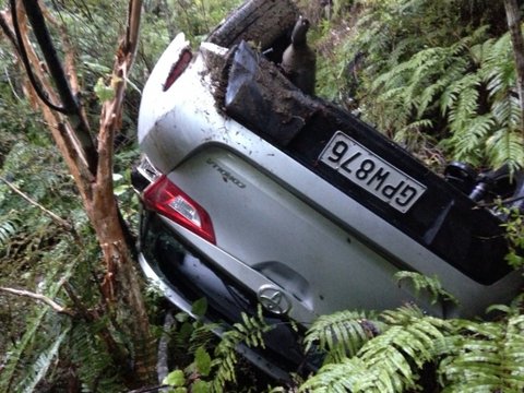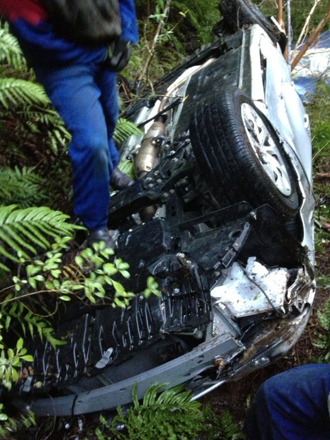 예.. 지금 생각하시는게 맞습니다. 빙판에서 차가 미끄러져서 산에서 그대로 추락해버렸습니다.
