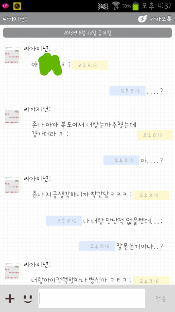 나 얘랑 이러케 톡한거 처음인데;