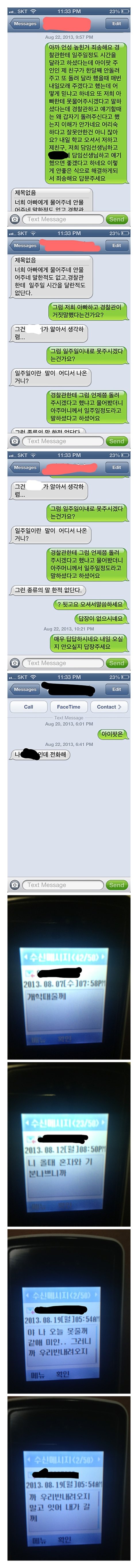 아까 언성을 높힌것은 죄송한데 이미 한달째 안돌려주는 아이팟을 일주일이내에 돌려주겠다는것을 어떻게 믿냐 훈계는 저와 공씨사정 아니다 아빠한테는 못물어주겠다하고 경찰관에게는 물어주겠다 말바꾸는것도 이해가 안간다 내일 학교로 오시면 담임선생님들과 공씨와 저와 김씨외 여섯이서 얘기하자 했더니 일주일이내에 돌려준다는 말을 하지 않았다는것입니다