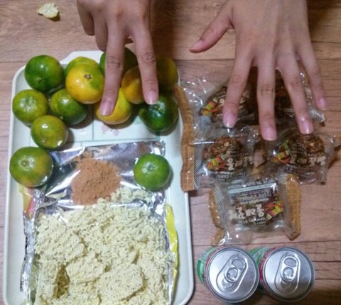 7번 귤+라면+꿀빵+매실음료