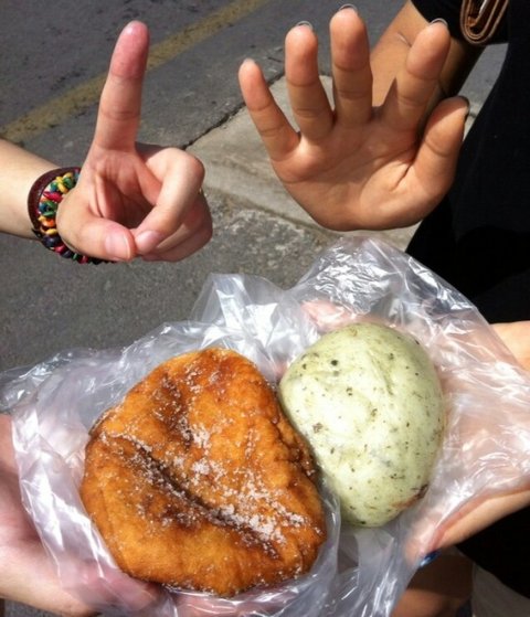 넷째날 아침은 중문 오일시장이 서는 날이라 구경갔다가 쑥찐빵이랑 도너츠 먹음!