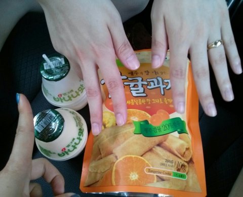 끼리 티 맞추겠다고 지하상가랑 시내 엄청 돌아다녀서 급 출출ㅋㅋ 동문시장에서 사온 꿀빵이랑 귤! 참! 제주 귤은 초록색이 맛있는 거래요~