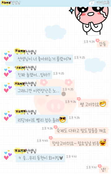 선생님이랑 나랑 했던 카톡중에서 재밌고 훈훈한(?) 카톡내용을 보여드리겠심