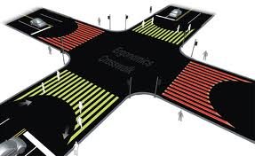 조용하고 좁은 도로에는 -방지턱이나 충분한 경고사인이 같이 있는 횡단보도를 그리고,,