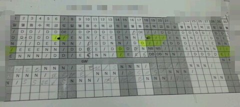 원래는 이런 근무표는 근로법상 안된다고 되어있다고 하던데 (법에 대해선 제가 잘 모릅니다 ..ㅠㅠ 부끄럽게도 .)