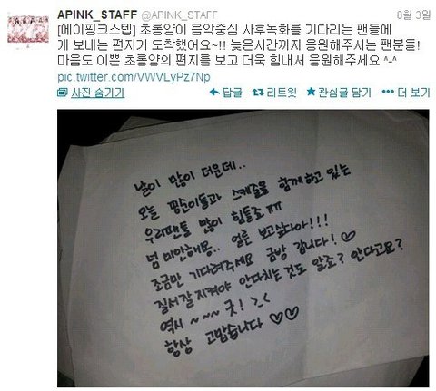 이렇게 팬들에게 편지써주는건 기본이고 항상 고맙다고말하는 리더 에이핑크박초롱