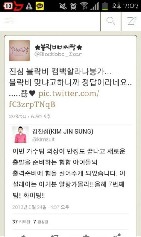 솔직히 말하자면 다른 팬덤들이 자기가수 컴백한다고 좋아하는거보면 부럽기도하고 블락비는 언제 쯤 컴백할까...이런생각도 많이 했지만 지금 다시 생각해보니 블락비 컴백기다리면서 한층 더 성숙해질 수 있었던것같고 여러모로 블락비한테 고마워요 그리고 컴백언제 하던 그때까지 기다릴테니까 더 멋있어져서 돌아와요 엽사표정하고 포즈도 좀 신선한걸로 준비해와요ㅋㅋㅋㅋ!!사랑해요♥