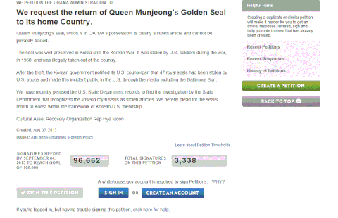 10만명이 넘으면 공식 입장을 표명할 수 있다고 하는데 지금 3천명이 좀 넘습니다...