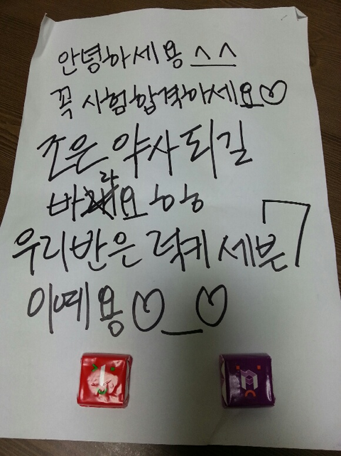 생판 모르는 사람인데 시험 잘보라구