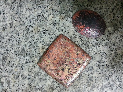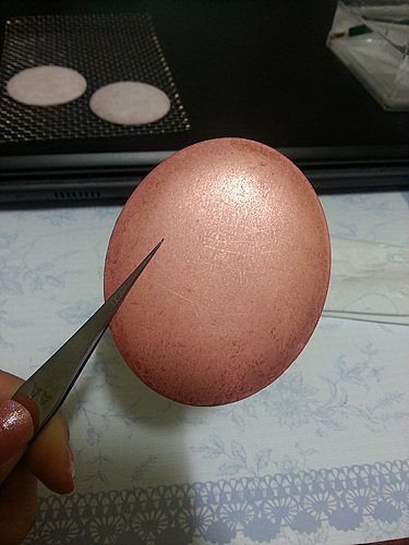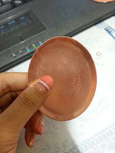 저대로는 작업을 못하니까 동판을 유산에 잠깐 담궜다가 꺼내서 닦아주면 아래 사진처럼 깨끗해집니다. 지금보니 꼭 계란같네요. ㅎㅎㅎ