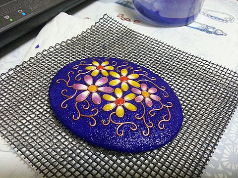 2. 동판뒷면에 잡색유약을 칠해줘요.