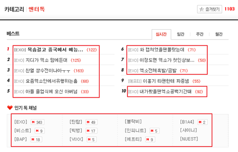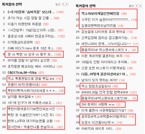 (오전까지만해도 톡커들의 선택도 전부 엑소였는데 많이 줄었네요)