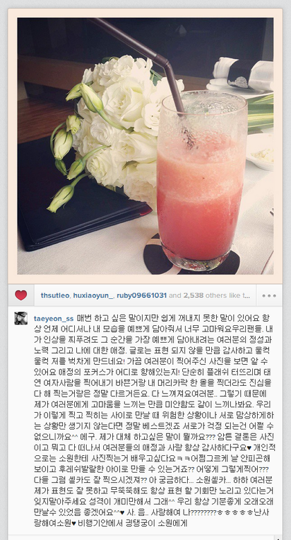 ㅋㅋㅋㅋㅋㅋㅋㅋㅋㅋㅋㅋㅋㅋㅋㅋㅋㅋ태연은 진짜 팬들을 아끼는 것 도 있지만 사랑하는듯