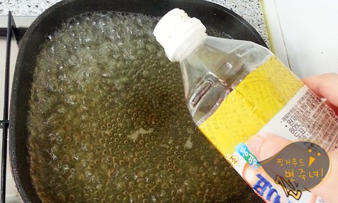 끓인물에 멸간장 3스푼을 넣어 줍니다.