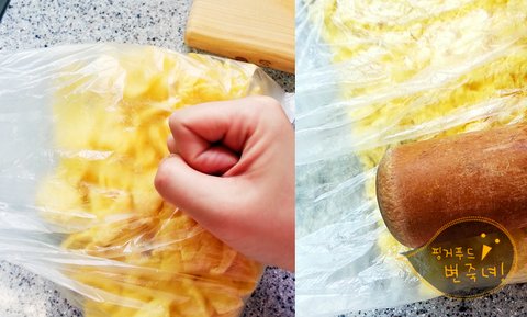 손으로 팡팡 부시다가 방망이로 슬슬 밀어 으깨주세여.