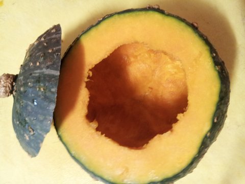 단호박 450~500g정도(밥그릇 하나크기)의 크기로 준비해 속을 깨끗이 정리한다