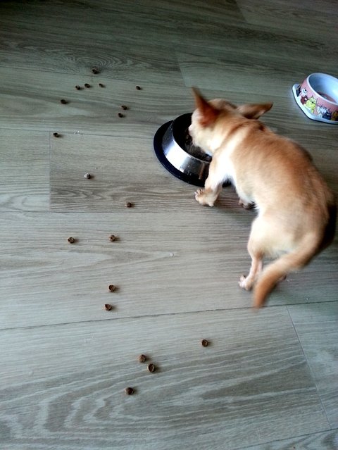 원래 먹던 사료는 세모난 사료인데 사료를 우걱우걱 먹는 편이 아니라