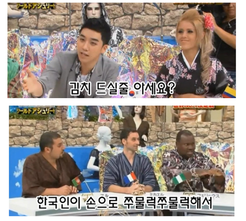 거기에 우리나라 빅뱅의 승리가 출현을 햇습니다. 근데 여기서 우리나라 김치를 가지고 비아냥거림