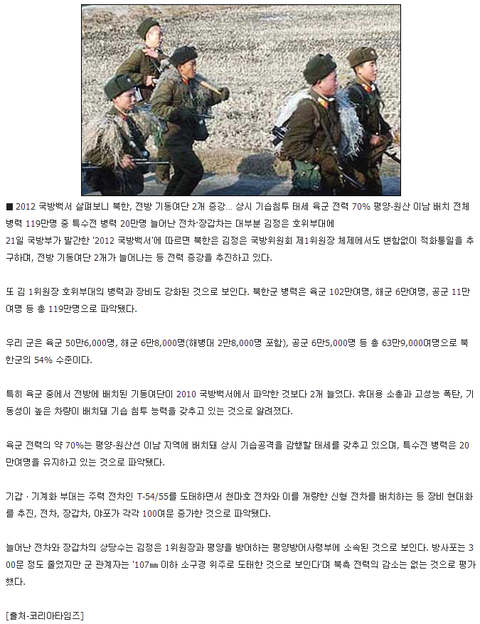우리나라는 특전사가 약 2만명이지만 북한은 전투능력이 뛰어난 특전사가 20만명으로 증강하였습